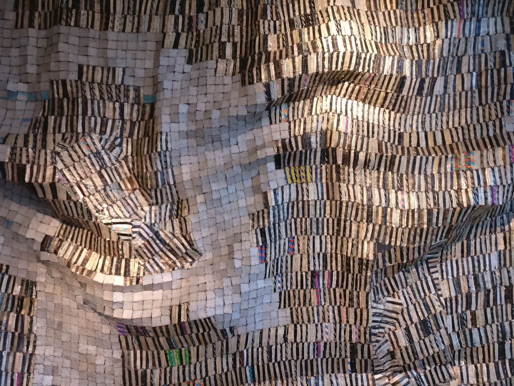 Last but not least, it was enjoyable to see references to ‘Sankofa’, a concept I dealt with quite extensively in my master’s thesis. It’s a Ghanaian Asante symbol which means ‘going back to retrieve’. It’s basically about understanding the past, appreciating where you and everything around you comes from, in order to move forward in an informed way. The concept became popular after Ghanaian independence in the late fifties when the country wanted to cultivate and nurture a Ghanaian identity. It’s good to remember that this is the context in which El Anatsui attended art school. The concept is also relevant in an exhibition which deals both with the artist’s legacy and new works. Now we’re informed and I’m excited about what’s next.