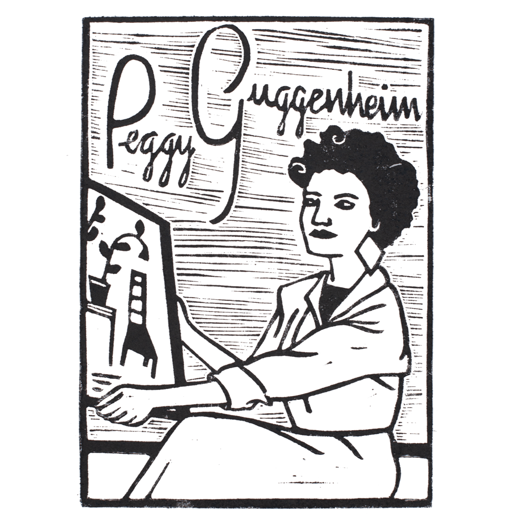 As a result of her father’s premature death aboard the Titanic’s maiden voyage, Peggy inherited her grandfather’s fortune at the early age of 21. When travelling to Paris with her mother, Peggy met and married the French writer Laurence Vail. He introduces her to Parisian artists and future friends, like Marcel Duchamp and Constantin Brancusi, who guide her through the art world. She slowly gets a feel for what is the cream of the modern art crop.